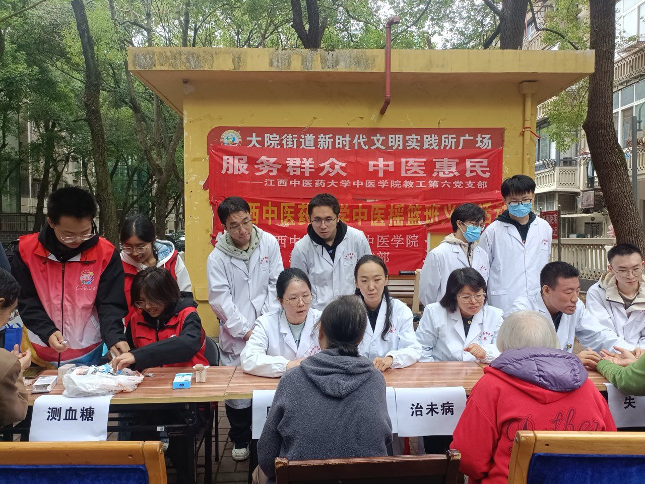 (江中通讯员 杨玉婷) 11月1日上午,在江西省慈善总会的支持下,中医学院教工第六、第四党支部联合中医摇篮班深入南昌市东湖区省政府大院第二社区开展义诊活动,为社区居民提供中医药健康咨询与指导。