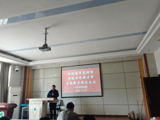 (江中新闻网讯 通讯员 孙法莹)为深入贯彻立德树人根本任务,推动教育家精神与学院教育实践深度融合,11月7日下午,中医学院召开“弘扬教育家精神争做四有好老师”专题教育推进会。会议由学院党委书记主持,全体教职工参会。